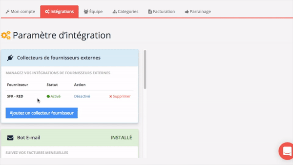 Importez vos factures de plus de 1000 fournisseurs sur vos espaces clients (SFR, EDF...).